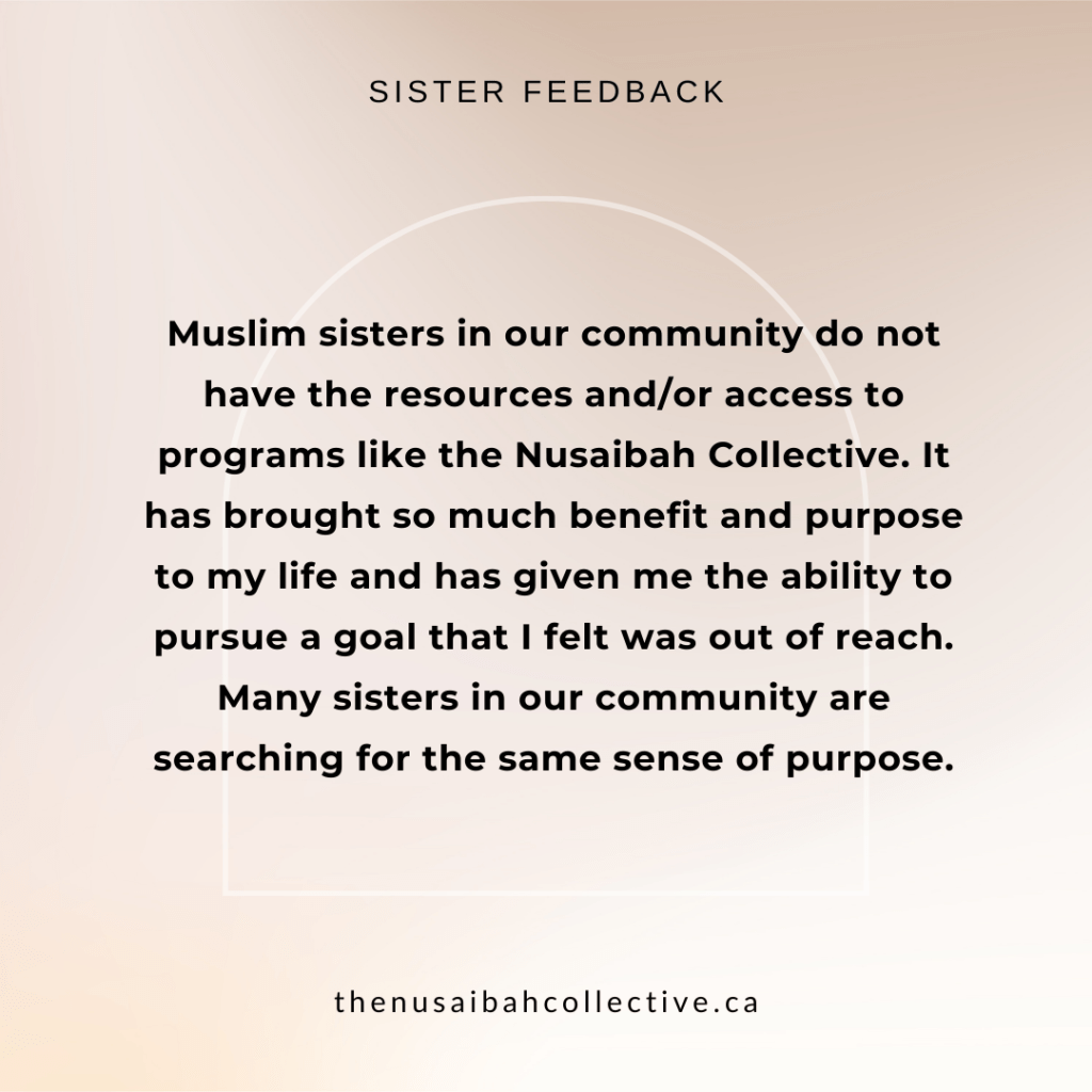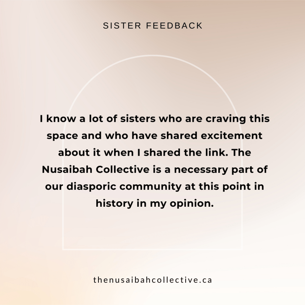 The Nusaibah Collective is an independent, grassroots project. The original cohort (2021-2022) was made possible through support from The Velma Carter Centre for African-Canadian Women and Sisters Dialogue.