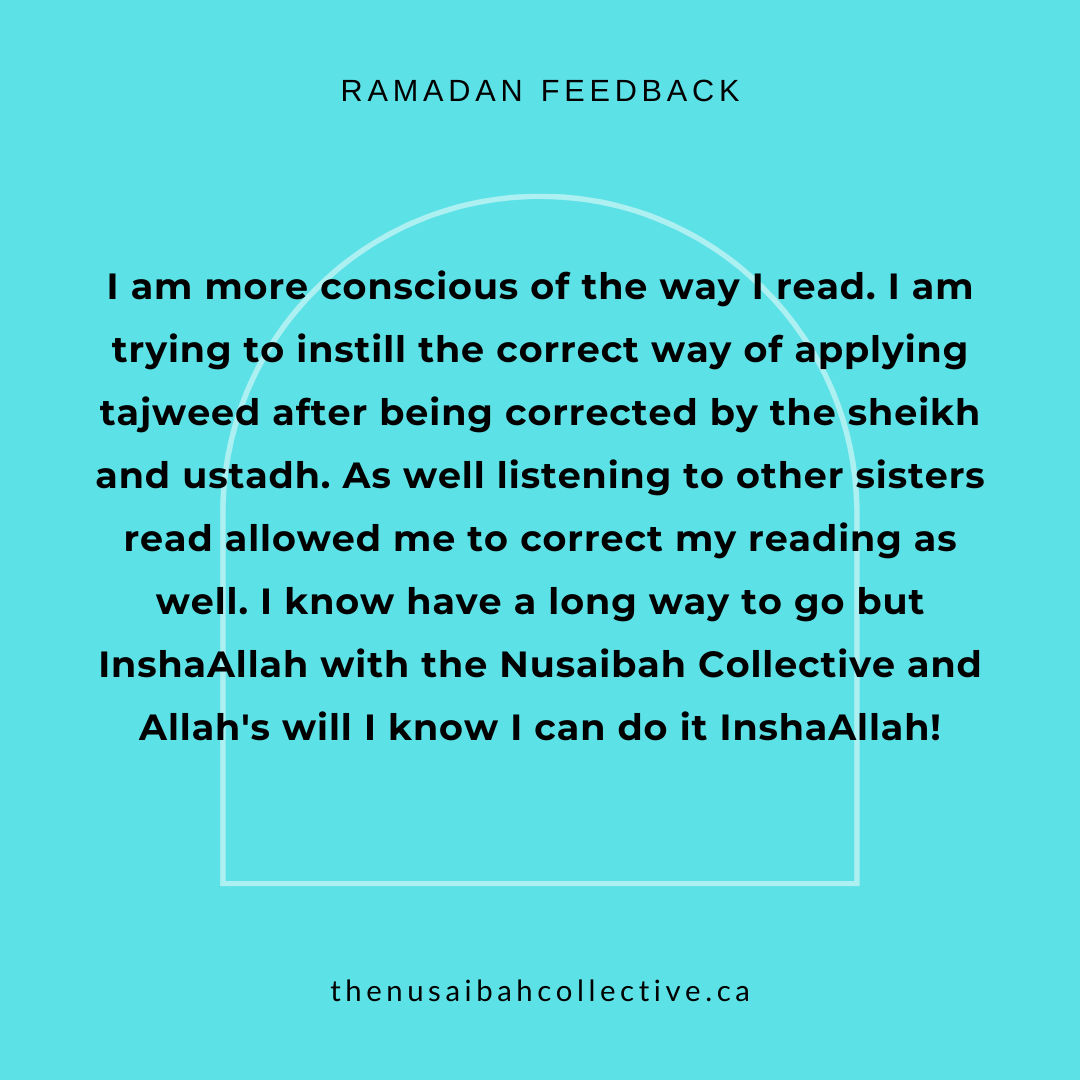 - Weekly khatma sessions to practice reading (with live correction) for slow & fast readers