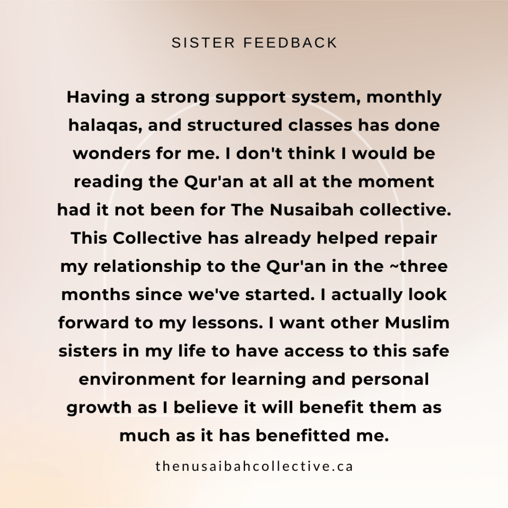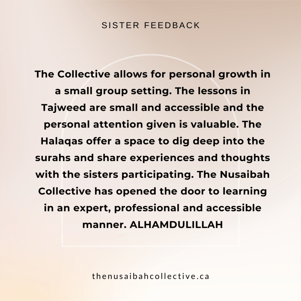 By Allah’s Will, it is our prayer that The Nusaibah Collective be “a soft place to land” – a place of refuge, of nourishment, and of growth, especially for the soul-weary.