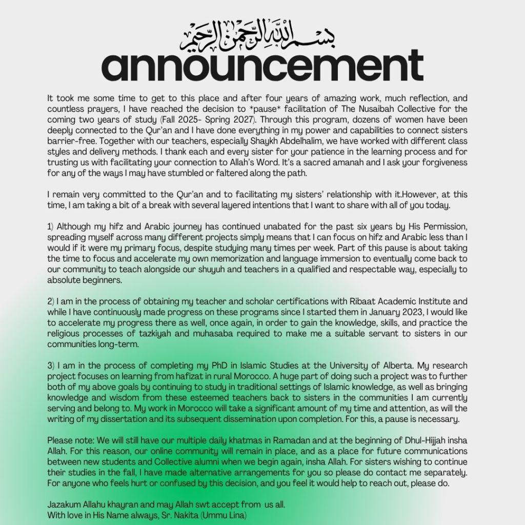 The Nusaibah Collective is not taking applications for our 2025-2027 cohorts. Please see our statement below for details.